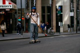 Nos adentramos a descubrir la ciudad de San Francisco. La urbe no es muy grande pero su orografia esta llena de empinadas cuestas. A los primeros pasos, el lugar me encanó.Tiene algo, duende. Sus calles con multitud de vaivenes y zonas peatonales hacían que te sintieras libre, sin que te vinieran sensaciones de agobio debido al transito de personas o debido al exceso de trafico. Todo era muy pausado, como si etuvieras paseando por un parque. Por la mañana, visitamos toda la zona mas concurrida de la ciudad . Estábamos ubicados en el centro, así que fue fácil movernos y acceder a Chinatown, lugar donde pasamos la mañana. Una porción de China te envuelve sin darte cuenta. Multitud de establecimientos te transportan a otro continente. Siguiendo la calle principal vas percibiendo olores que desprenden infinidad de alimentos expuestos en multitud de compartimentos puestos en los mostradores que dan al exterior de las calles. Una marabunda de asiáticos y algun que otro occidental intercambiaban sus billetes por toda clase de alimentos. El sonido que percibimos es imposible de traducir ya que los comerciantes aun conservan su lengua originaria. EL color rojo esta presente en toda la calle, pero de manera repentina desaparecen los comercios chinos y aparece un tricolor formado por los colores rojo, verde y blanco. El barrio oriental da paso a una cadena de restaurantes italianos. Eso indica que hemos entrado en la pequeña Italy. Paramos hacer un expreso y tomamos fuerzas para subir a la torre de telegramas. La pendiente era empinada pero el esfuerzo mereció la pena. Desde dicho lugar había vistas espectaculares a los dos puentes de la bahía. Fue la primera vez que divisábamos la famosa isla de Alcatraz, famosa por su prisión, la cual se gano su fama como un lugar facil de entrar pero inespugnable a la hora de salir, execpto para Clint Eastwoot. Comimos en un chino del barrio y probamos la langosta. Como han cambiado las cosas. Hacia poco comía sándwich de Nutela y ahora resulta que paso a comer delicioso crustáceo. Después de la fabulosa comida nos dirigimos a comprar un saco de dormir para la Llum y una tienda de campaña para la pareja. Caminar agiliza la digestión , pero cuando nos acercábamos a la zona donde se ubicaba la tienda, comenzamos a ver un tipo de fauna rara.